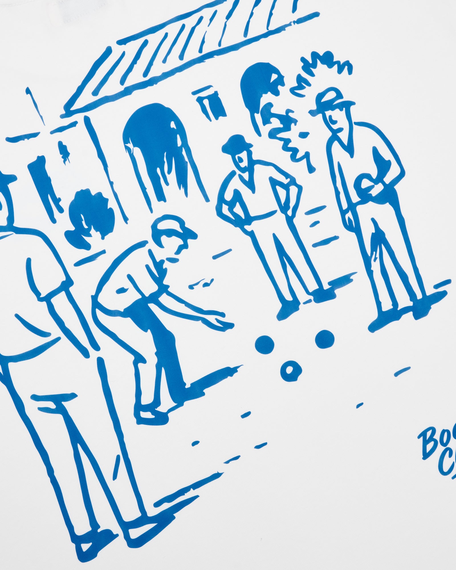 • Printed Bocce Club artwork at back